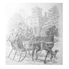 | Mr. and Mrs. Lincoln taking Tad and Willie for a family sleigh ride in Springfield, Illinois in 1860. A dog is trotting along beside. There is a large home and snow covered trees in the background. | |