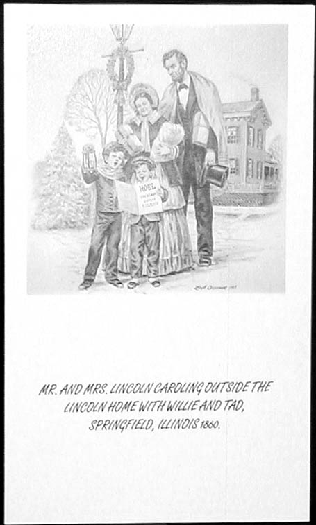 Mr. and Mrs. Lincoln caroling outside the Lincoln home with Willie and Tad in Springfield, Illinois in 1860. | |||