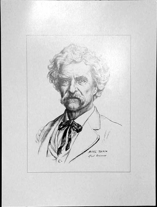 Prints from original art work by Lloyd Ostendorf Owned and published by George Borum Jr. 140-5-15 Subject: Mark Twain Description: 6" x 8" portrait print Prints: (6 available) 10.00 Each